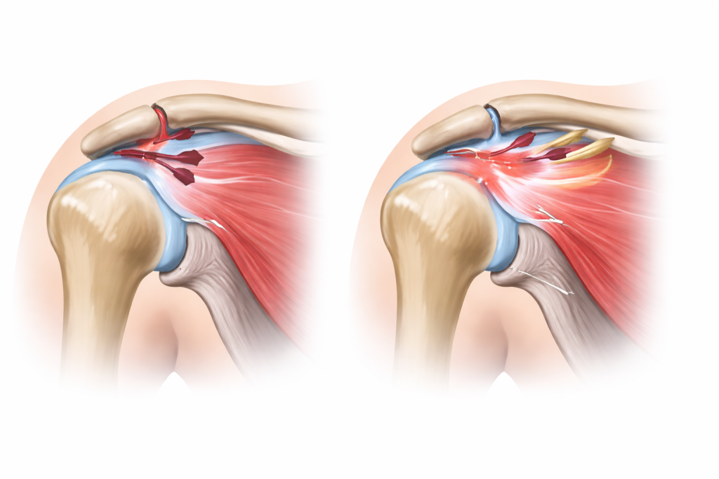 - Rotator cuff tears: Partial or full-thickness tears in the rotator cuff tendons can narrow the space in the shoulder joint, causing impingement.