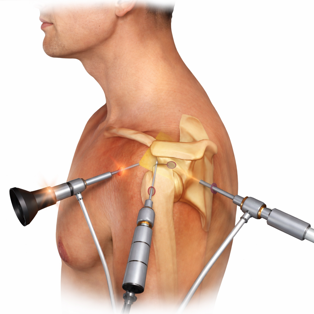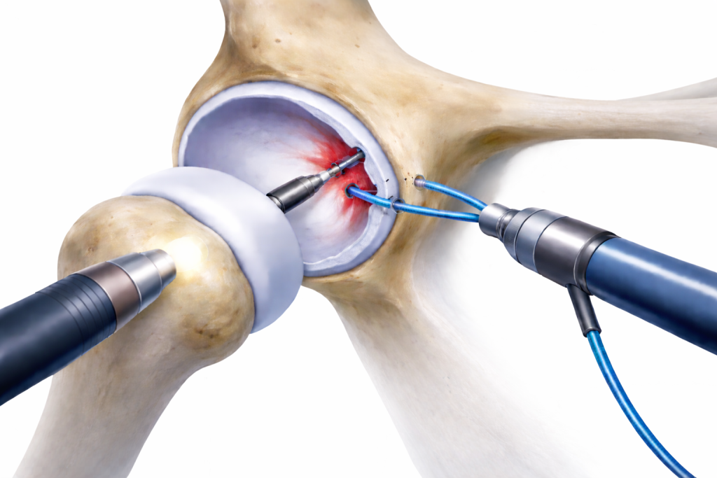 Shoulder arthroscopy is a minimally invasive procedure where small incisions are made, and a tiny camera (arthroscope) is inserted to diagnose and treat shoulder conditions. This type of surgery is commonly used for conditions like rotator cuff tears, labral tears, and impingement syndrome.